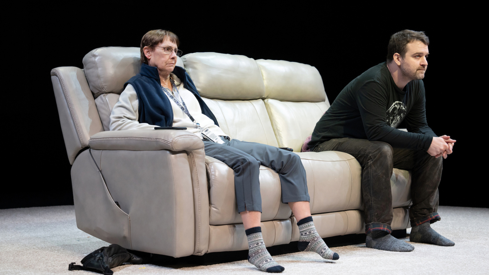 Little Bear Ridge Road is unassuming, intimate, honest and memorable without insisting upon itself, especially under Joe Mantello’s human direction. Save for a quietly gorgeous moment when Heather Gilbert lights the back wall to evoke a night sky, Scott Pask’s set is barely more than a couch on a slightly elevated platform, and Jessica Pabst’s costumes are dutifully well-observed. It all works.
