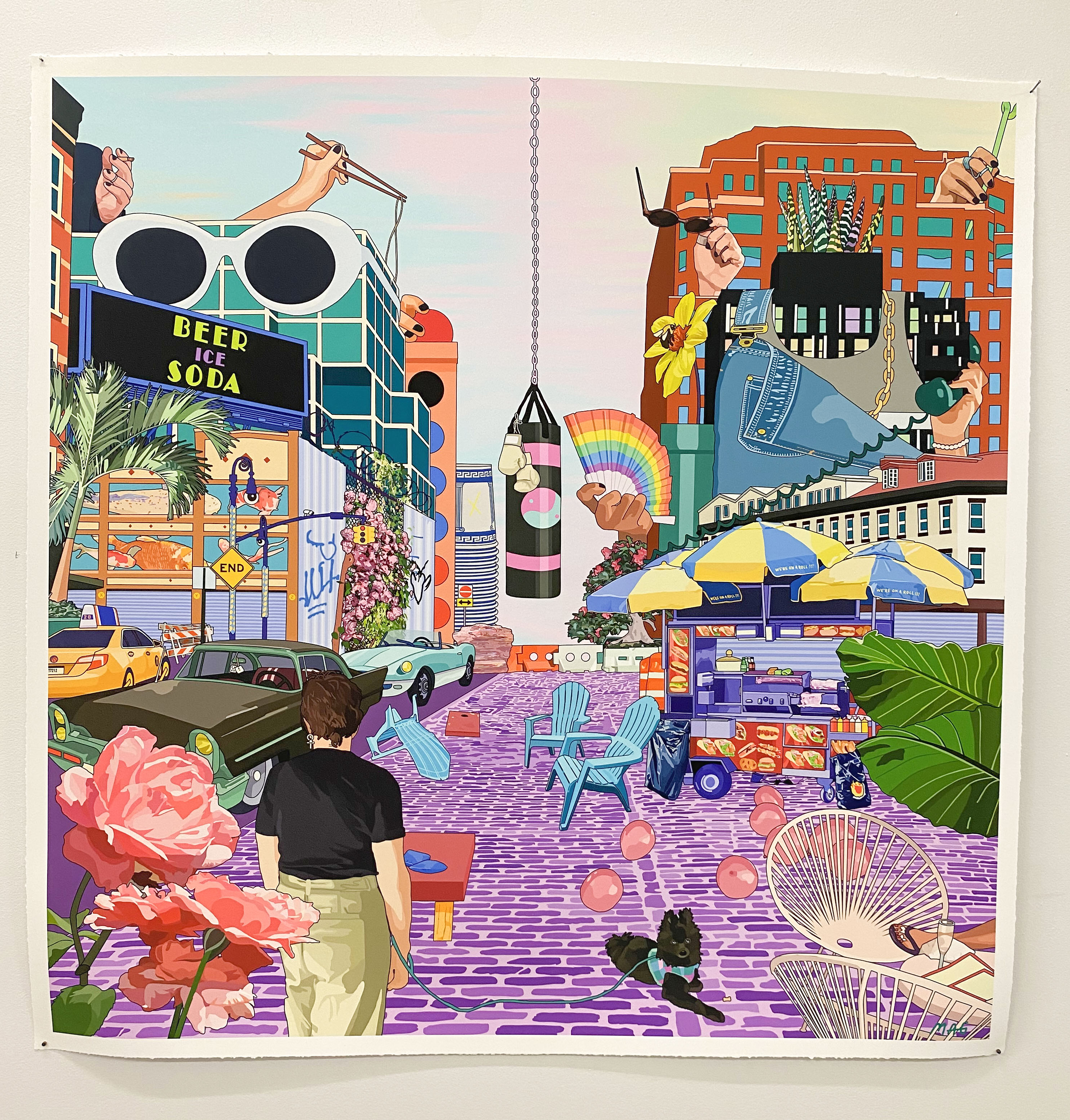 Molly Goldfarb (b. 1992) is an independent artist based in lower Manhattan, known primarily for her vibrant acrylic and digital paintings as well as her early abstract marker portraits. Her playful, pop-meets-punk aesthetic takes shape in a wide range of subject matter inspired by her life in the city, her travels to warm weather climates, plants, plays on words and, most recently, by her nature walks and surroundings at home.