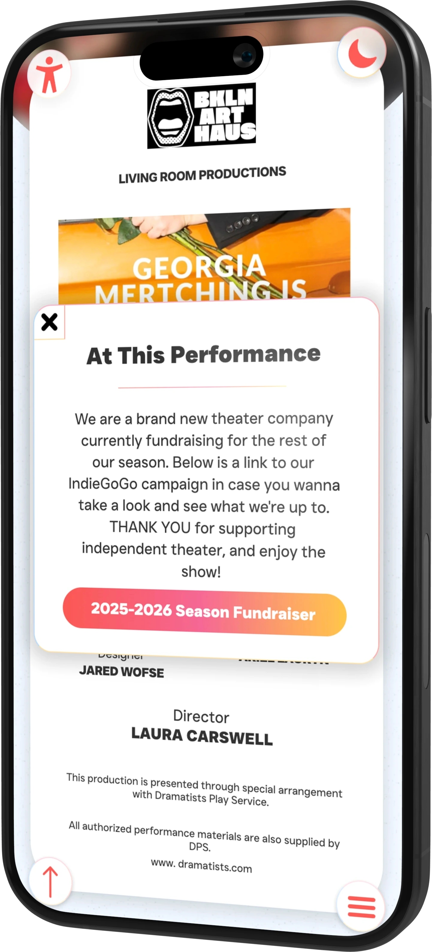“Fundraising isn’t a once-a-year ask,” she says. “It’s part of everything we do. Every dollar goes directly toward what makes the work possible—paying artists, securing space, investing in design, keeping our shows accessible.”