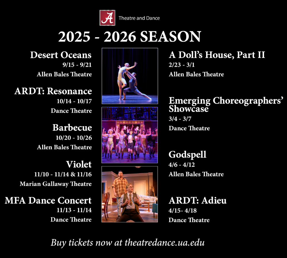 Lyndell T. McDonald† currently serves as Associate Professor and Technical Director for Dance at The University of Alabama. He is a member of the International Alliance of Theatrical Stage Employees (IATSE) local 78 stage union. One of his most recent projects was Scenic Director and Scenic Designer for The World Games 2022 opening and closing ceremonies in Birmingham, AL. His lighting design credits include: The Color Purple, LaRonde, The Grapes of Wrath, The Piano Lesson, and Romeo and Juliet to name a few. He has produced work for the Alabama Shakespeare Festival, Urbanite Theatre, American Ballet Theatre, Opera Birmingham, Revival Theatre Company, Theatre Tuscaloosa, and more. Lyndell also owns an event lighting and production company, 2L7, LLC. The company manages and designs lighting and decor for special events including formal galas, fundraisers and weddings. Visit his websites LYNDELL2L7.com or 2L7Productions.com.