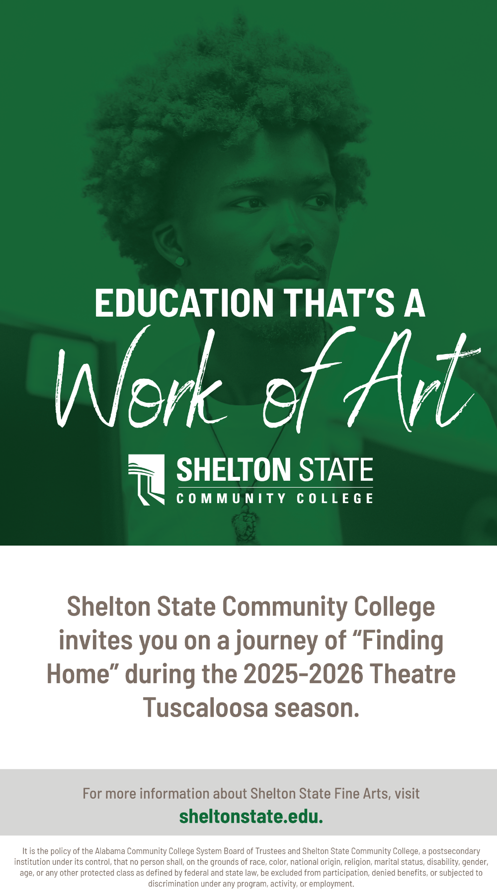 Kenyatta “YaYa” Browne holds a B.S. in communications from Mississippi College and an M.S. and M.B.A. from Western Governors University. She’s worked professionally in Atlanta and Miami on stage, print, and commercial projects. Credits include “Amah” in Harlem Duet, “Mrs. Breedlove” in The Bluest Eye, and “Wanda” in Crowns with Tony Award winner, Melba Moore. She’s been seen on the Theatre Tuscaloosa stage as “Mabel” in Crowns and as “Clairee” in Steel Magnolias. “It is an honor to contribute to the beautiful art of telling the stories you may not otherwise hear.”