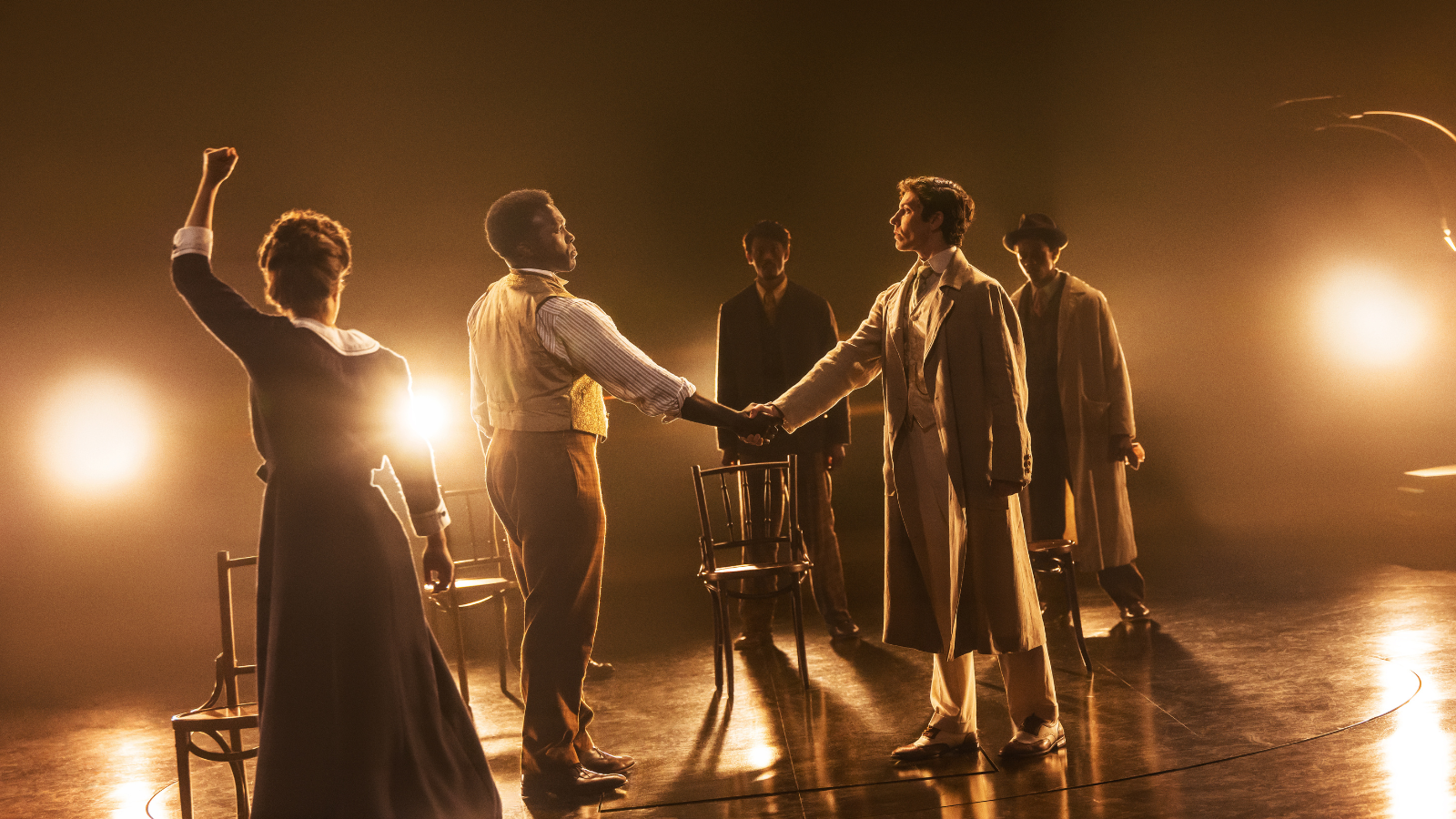 Arguably, all the characters of Ragtime are archetypes, each representing one aspect of the American experience. Yet it is hard not to feel that Cassie Levy (as Mother), Brandon Uranowitz (as Tateh), Colin Donnell (Father) and Ben Ross (Younger Brother) have more nuance to work with in McNally’s text. All are superb, just faultless. Ross is leaning more into a sly humor that delights, while Levy and Uranowitz’s easy chemistry feels lived-in and real—watching the two together is a delight.